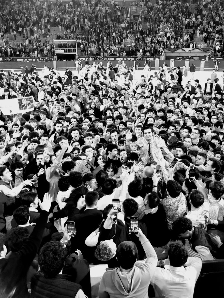 Mais juste avant donc, Morante avait rappelé combien le voisinage des grands artistes pouvait être cruel pour leur entourage. Brillant au capote au 2, il fut pris au 4 au détour d’une chicuelina et laissé KO au centre façon Manet. Rapatrié au burladero, le protocole commotion sembla sans appel : livide, déséquilibré, c’est une semaine sans jouer au rugby et bien trois minutes avant de retourner se frotter au Garcigrande. La faena? Droitière surtout, fuera de cacho, mais attention le toro par l’intérieur, cervicales à l’essorage et le trajet millimétré le long de la ceinture verte. Le costume est lila et or mais depuis 40 ans on dit Chenel y Oro. L’engagement est total et sans roulement de tambour, les talons scellés dans le sable : c’est la statue de Morante qui torée. En l’espace d’un quart d’heure, il a résumé l’extraordinaire année 2025, entamée au fond du trou, englué dans la détresse collante d’une maladie mentale indépégable puis jallonnée de succès, de « moments », sur le fil du rasoir. Grande estocade pour finir. En place, les deux pieds au sol, une photo de Camino ou d’Ostos. Deux oreilles, ou peut-être pas, et pour finir la vuelta, la puntilla urbi et orbi, coleta en main, larmes aux yeux, coeur en cendres au creux de la main.