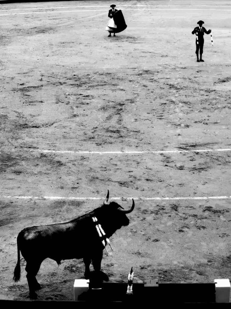 Román avait potassé son « Victorino » comme d’autres leur Dalloz et après avoir liquidé ce premier se montra très ferme muleta en main (moins au capote) avec les 3 et 5. Il fit rien moins que merveille au 3, ‘Esquinero‘, toro encasté qui sembla présider les débats dès les premiers capotazos et fit suer la goutte à des cuadrillas dont la concentration fut perceptible tout au long de la soirée. Brindis à Enrique Ponce en barrera, (corbeau des cheveux aux pieds) et attaque du troisième tiers dans le doute des gradins. Roman, lui ne « doute » pas le toro une seule fois (en tauromachie, « douter » est transitif), il baisse la main, toque sans brusquerie, laisse la muleta sous le mufle, prend garde à ne pas se faire accrocher et ne rompt pas lors des moments périlleux. On retiendra deux séries à droite alors que le passage à gauche fut plus âpre, la sortie finalement « rematée » après l’avoir crue avortée. Retour à droite puis épée en main somptueux final par aidées toujours très basses. Engagement à la mort mais l’épée tombe bas (et évidemment très efficace). Le public exige une oreille que nul ne contestera. Grand moment de toreo, d’aguante et de mando. Le 5 approchait les 6 ans et renversa le cheval en soulevant les pattes avant. Toro court et querencioso aux planches vers le tendido 10 mais encasté, Roman le sortit de son coin et administra une longue faena dans les tiers voisins du tendido 1. Faena entêtée pleine d’aguante avec les dangers inhérents à l’affrontement d’un toro sans grande charge. L’épée sortit par le flanc et mit fin à tout débat sur la possibilité d’une grande porte. Salut au tiers.